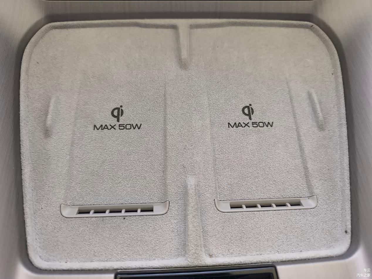 另外,腾势N7前排提供双50W手机无线充电板,支持QI协议的手机可实现高速快充,下方的出风口还能保证手机不会在充电时温度过高。