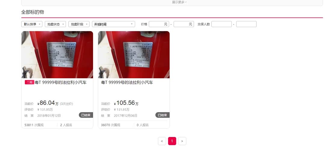 2017年12月6日,粤T99999被拍卖,由于当时无人报名,最终导致流拍,2018年1月12日,粤T99999被再次拍卖,二拍的起拍价要比第一次低,当时有2人报名,最终,这辆法拉利以105万的价格成交,从此以后,粤T99999就和这辆法拉利599分道扬镳了,后来,有人见过本田用粤T99999,至于这辆本田是不是套牌,那就很难讲了,要么是套牌,要么就是法拉利被拍卖后,车主不舍得这个牌照,然后装在了本田雅阁上,不过很遗憾,最终,粤T99999还是回到了号码池。