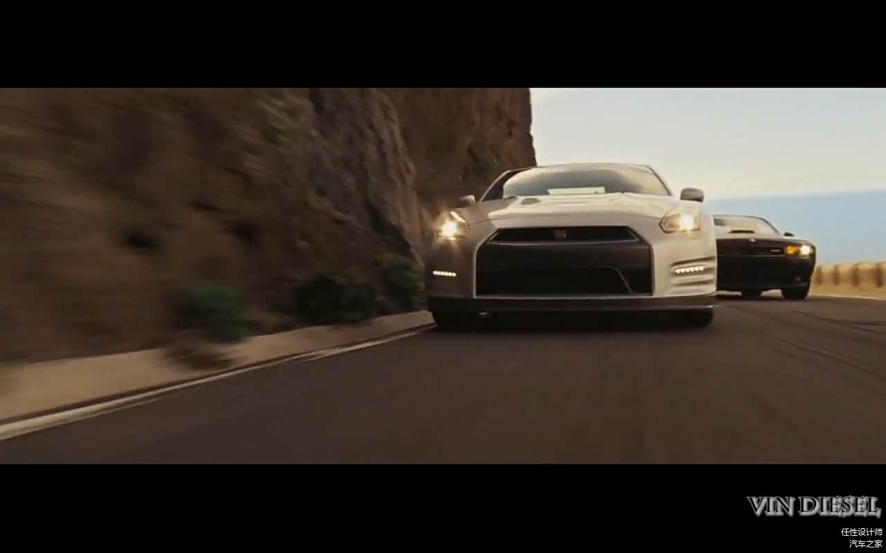 前辈们都出场了怎么能少得了R35 GT-R呢?这不,在速6开场就来了几个镜头的特写。