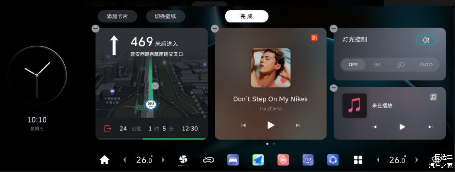 车机主交互界面经过全面优化:屏幕显示升级为卡片式桌面,支持更换主题壁纸、自定义桌面图标等;新增白天模式,可以带来更加舒适的视觉体验;状态栏新增蓝牙以及Wi-Fi浮窗,也大大提升了操作的直观性和便捷性。