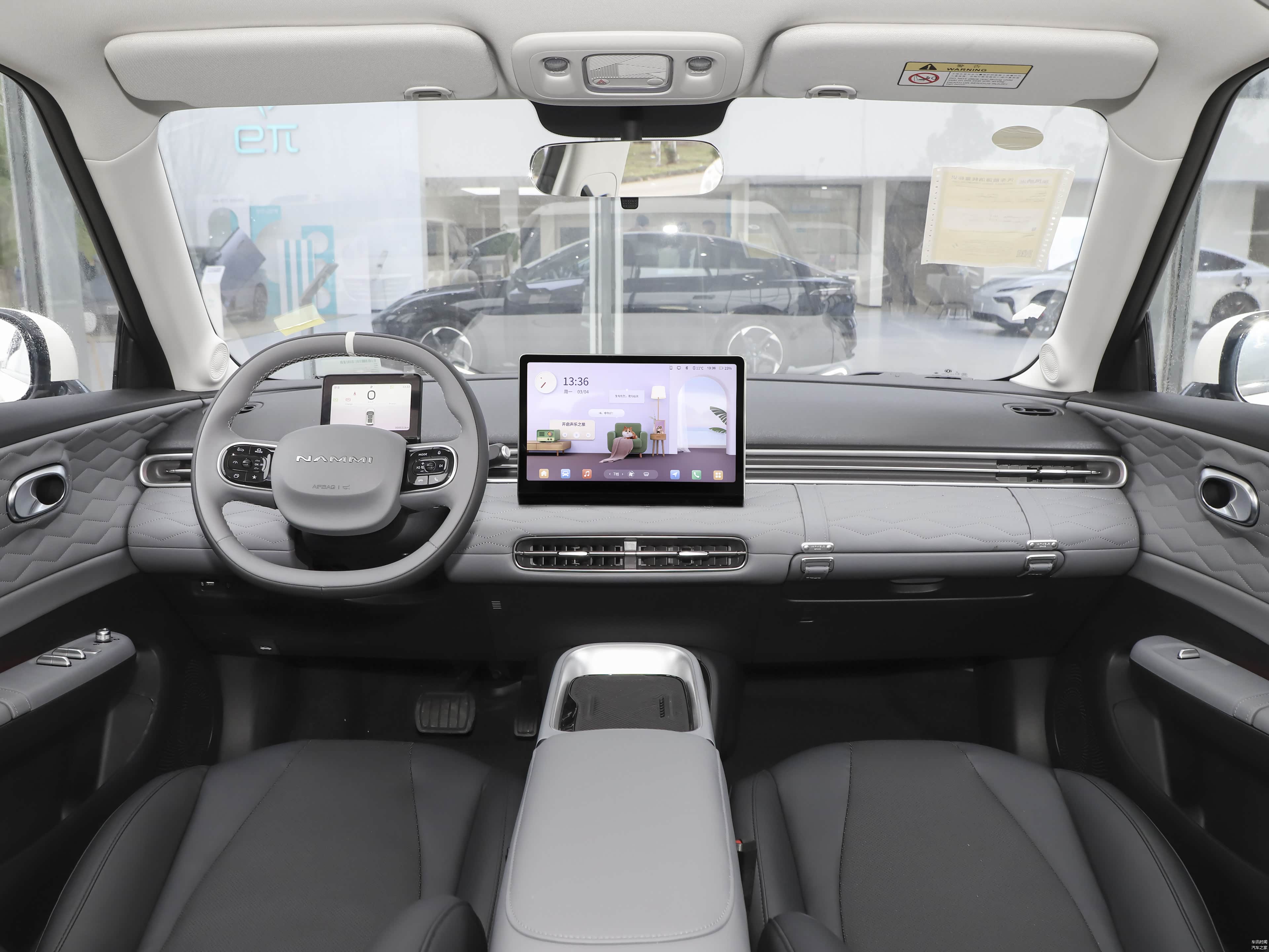 内饰方面,纳米01延续了外观的撞色设计理念,采用黑白双色搭配,其中白色区域采用皮革材质覆盖并添加菱形格纹路,尽显精致品质。空调出风口采用贯穿式设计,两块显示屏均为悬浮式设计,其中中控屏幕达到12.8英寸,操作流畅,分辨率高达1920×1080P;全液晶仪表盘虽尺寸稍小,但基本信息显示齐全,涵盖驾驶模式、续航里程等重要数据。
