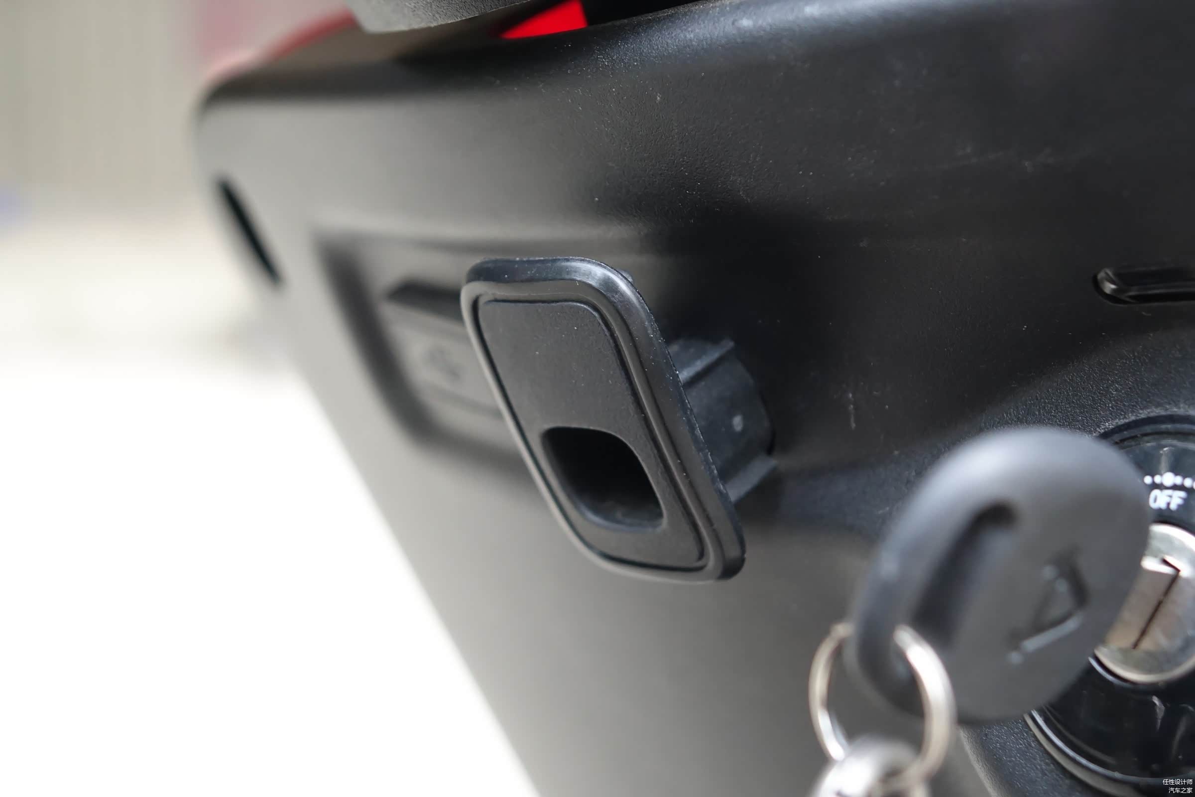 说到了这个位置,还有两个细节需要说一下,虽然很小但是能看出小牛的设计师还是走心了的。储物舱的两个角专门掏出了两个缺口,就是因为这两个小口使得储物仓刚好还能放下一块儿电池作为备用,这样一来行驶里程就可以一下翻了一倍(虽然我觉得也没啥太大用,谁没事儿骑个电动车跑200多公里)。