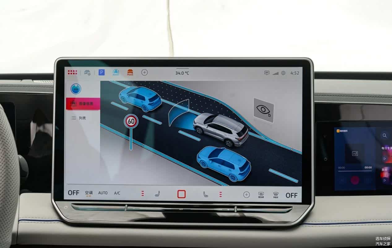 坐进车内,可以看到大尺寸的屏幕,包括10.3英寸数字仪表、15英寸中控屏,以及海外版没有的11.6英寸副驾娱乐屏。中央旋钮也有一个小屏幕,支持音量、驾驶模式和氛围控制,看起来颇具科技感。新车支持苹果CarPlay、百度CarLife、华为HiCar互联,中高配车型还将搭载12音响的哈曼卡顿音响系统,后排独立空调可分区调节温度,顶配车型提供车载香氛、前排座椅10点式按摩。
