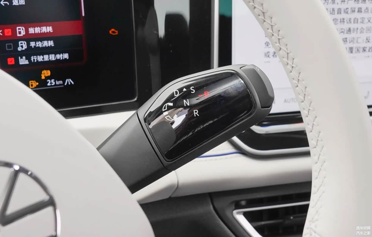 相比途观L还有一个明显的变化,新车的档把移动到转向柱右侧,释放了中控上的空间,向前转到“D”,车辆前进,向后转到“R”,就是倒车,按下侧面启用P档。变速箱依旧是祖传的7速湿式双离合。