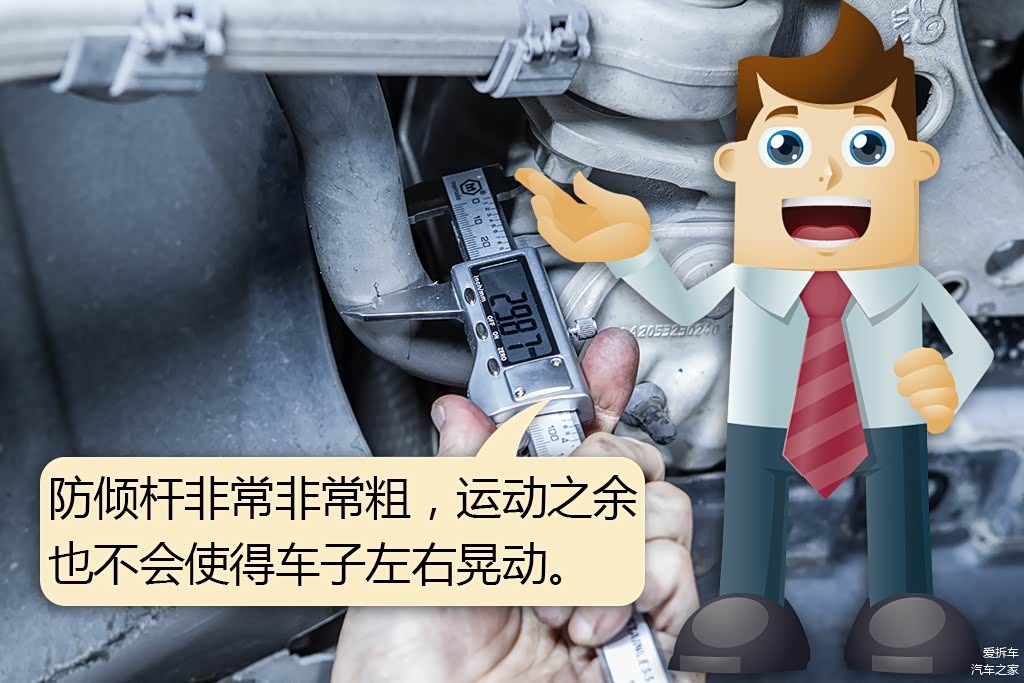 防倾杆非常粗壮,接近30mm的管径,按理说,这么粗的防倾杆会影响悬挂处理振幅较小的震动,但实际驾驶时,并没有出现左右摇晃的情况,相反,处理不大的路面起伏很舒服,至于运动性当然不需要担心。