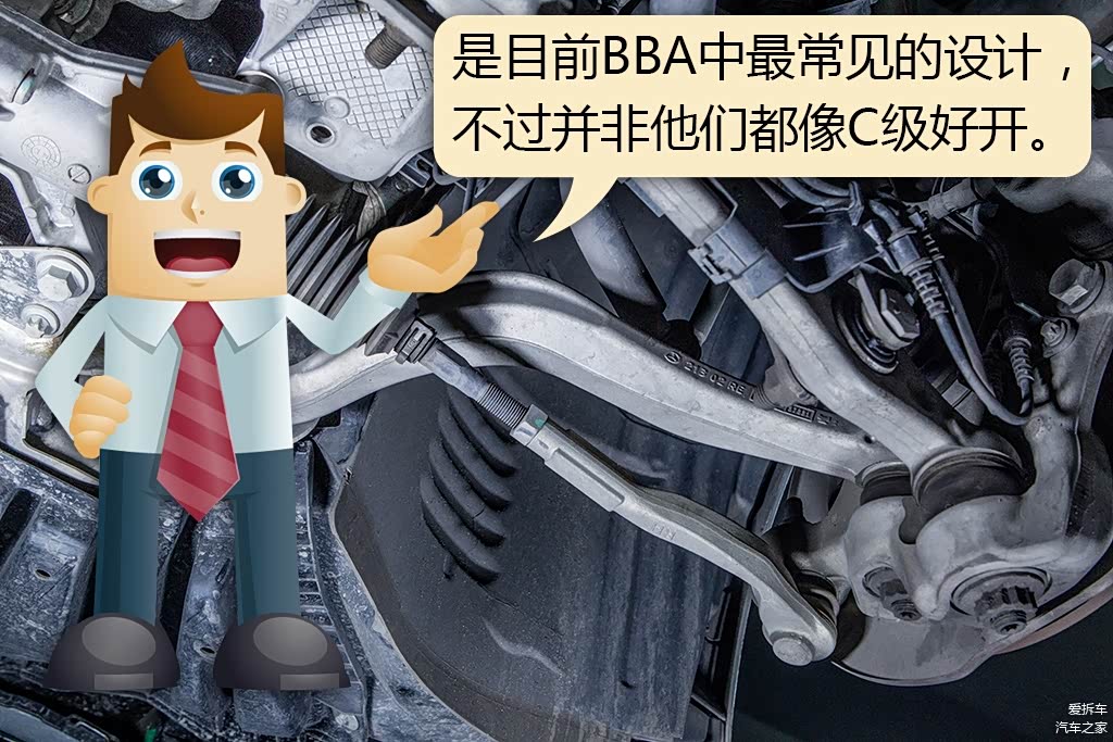 在奔驰C级的级别里面,竞争对手都是以双叉臂作为前悬挂的结构,不过也有键盘车神反驳说拆车君连配置表都不会看,上面写着是多连杆,事实上,所谓的多连杆就是双叉臂的变异,配合减震器、防倾杆、轮胎,宝马3系已经不能在运动界一枝独秀了。