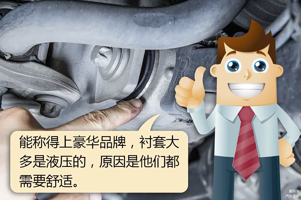 奔驰C级的所有连杆都是使用这种液压衬套,对于豪华车来说这是保证舒适性的主要措施,此外它的寿命也更长一些,价格嘛,当然是两倍。