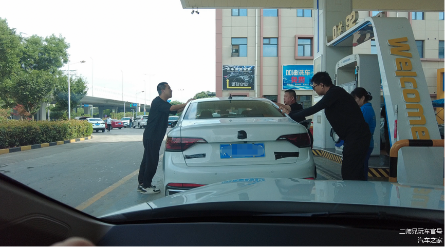 体验的终点其实也就是出发时的起点——加油站,再加油之前大家按惯例继续摇车,而且是包括本车媒体和别家媒体一起摇,所以大家摇车都很猛!因为摇得越猛,空气排的越干净,加的油越多,所以啊,大家都希望别的组的车可以多加点油。