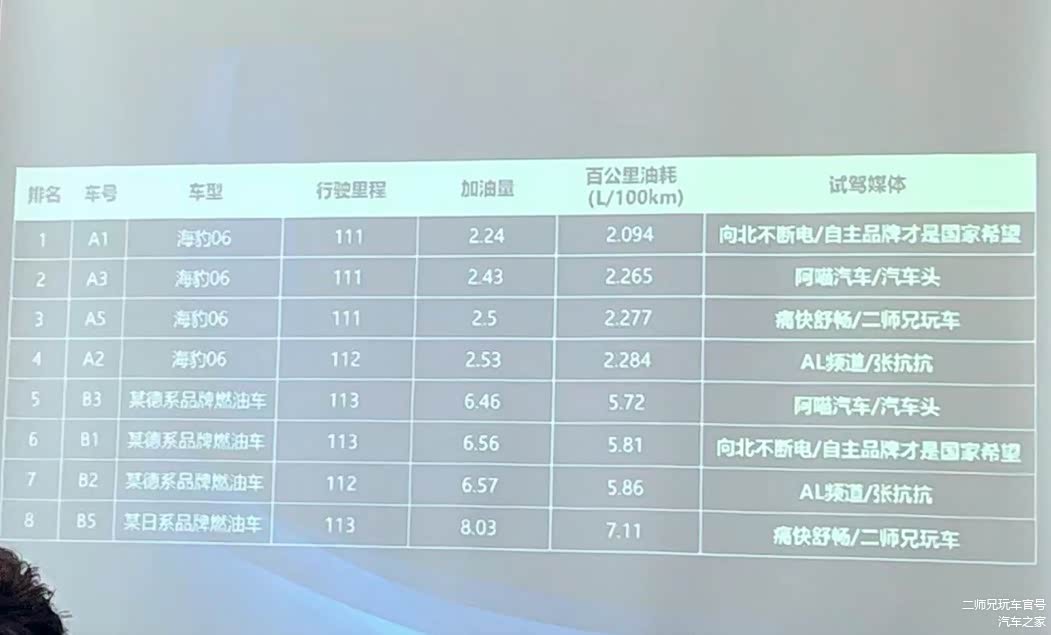 两家媒体一组,轮流开海豹06 DM-i,8家媒体共4组,8台车,4台是比亚迪06 DM-i,4台是竞品车。