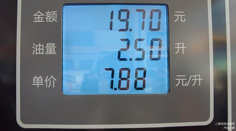 最终呢我们加了2.5升的油,按照7.88元/L的单价来看,一共花了19.70元。
