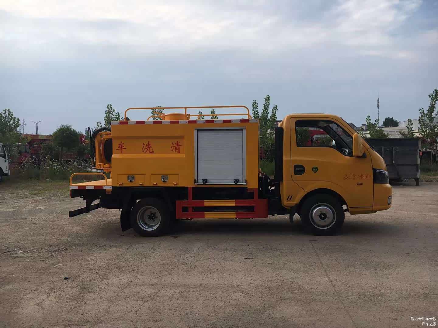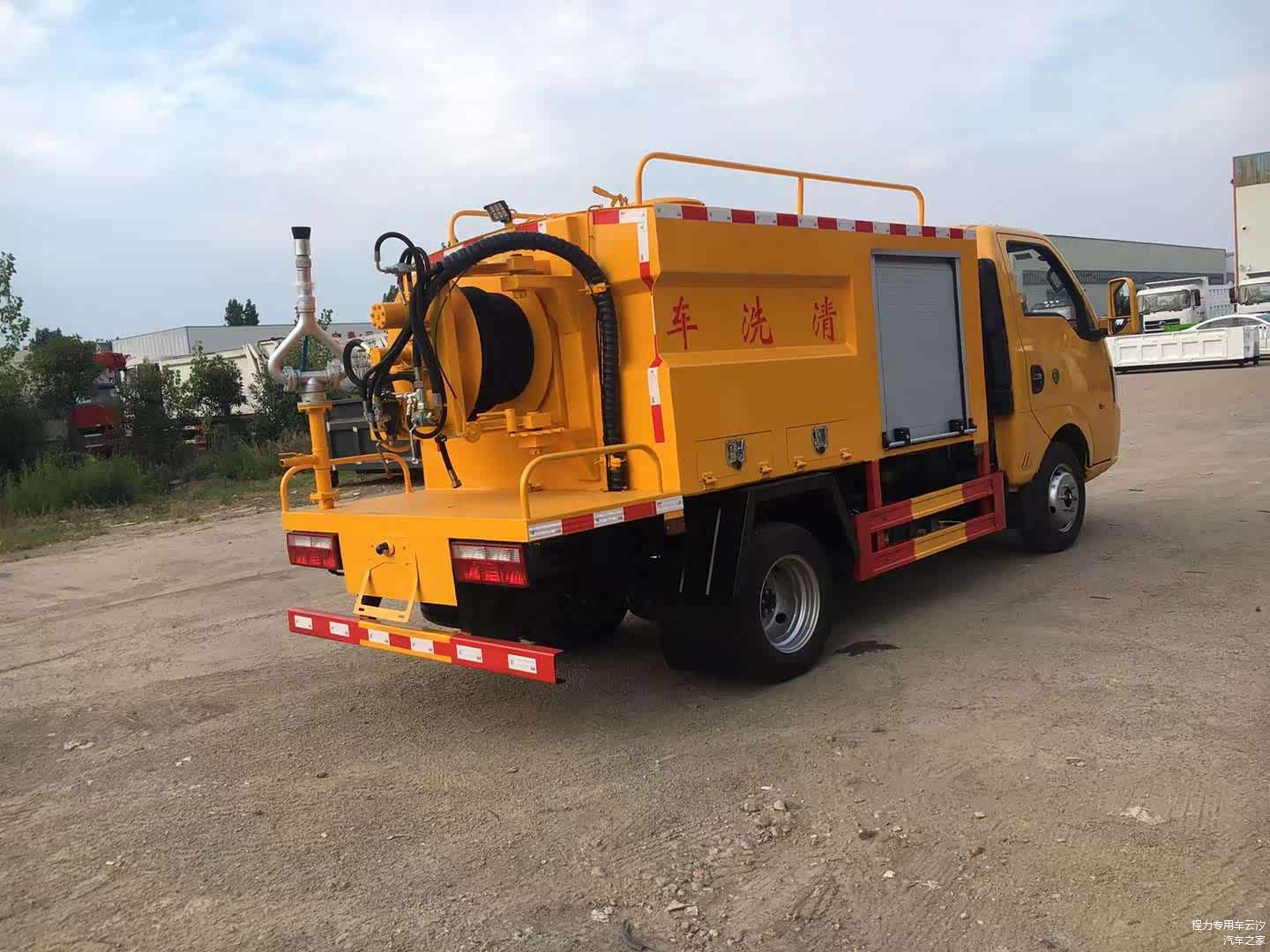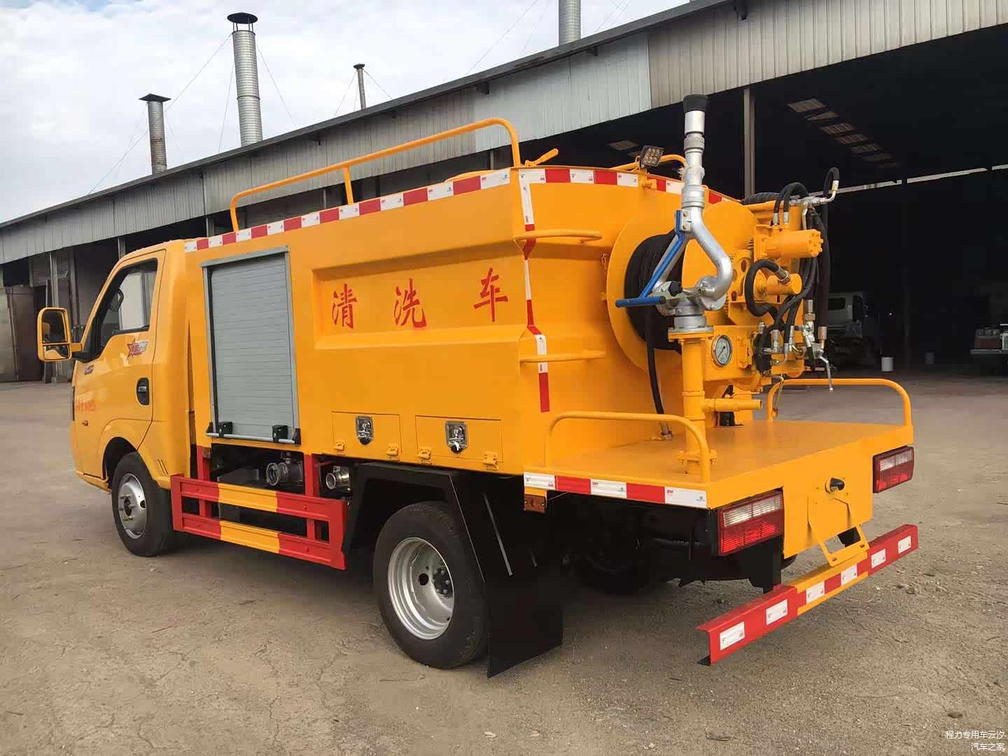 东风途逸2.5方高压清洗车,130流量高压泵,另加装高炮(可拆卸),下水道疏通车,蓝牌小型2.5吨高压清洗车,采用东风途逸底盘,轴距:2800,全柴95马力,5档变速箱,185R15轮胎,带空调,中控锁,电动门窗,油刹。