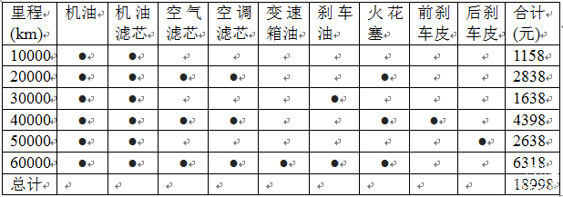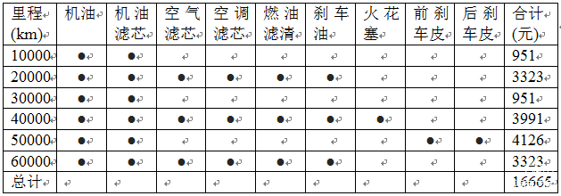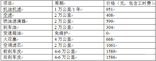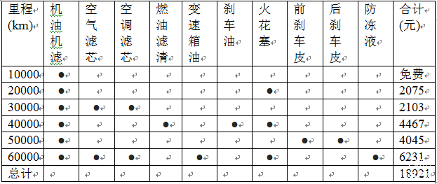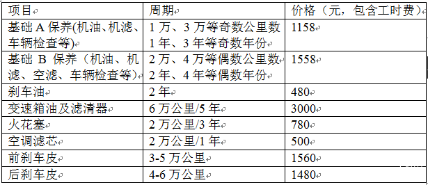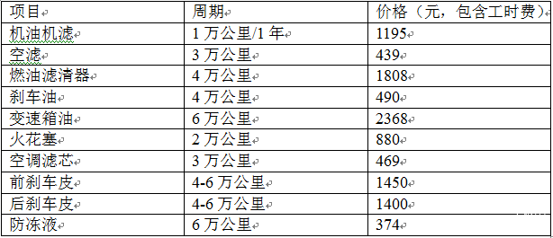 行驶6万公里或4年后,奔驰E级(E180L)的保养费用明细: