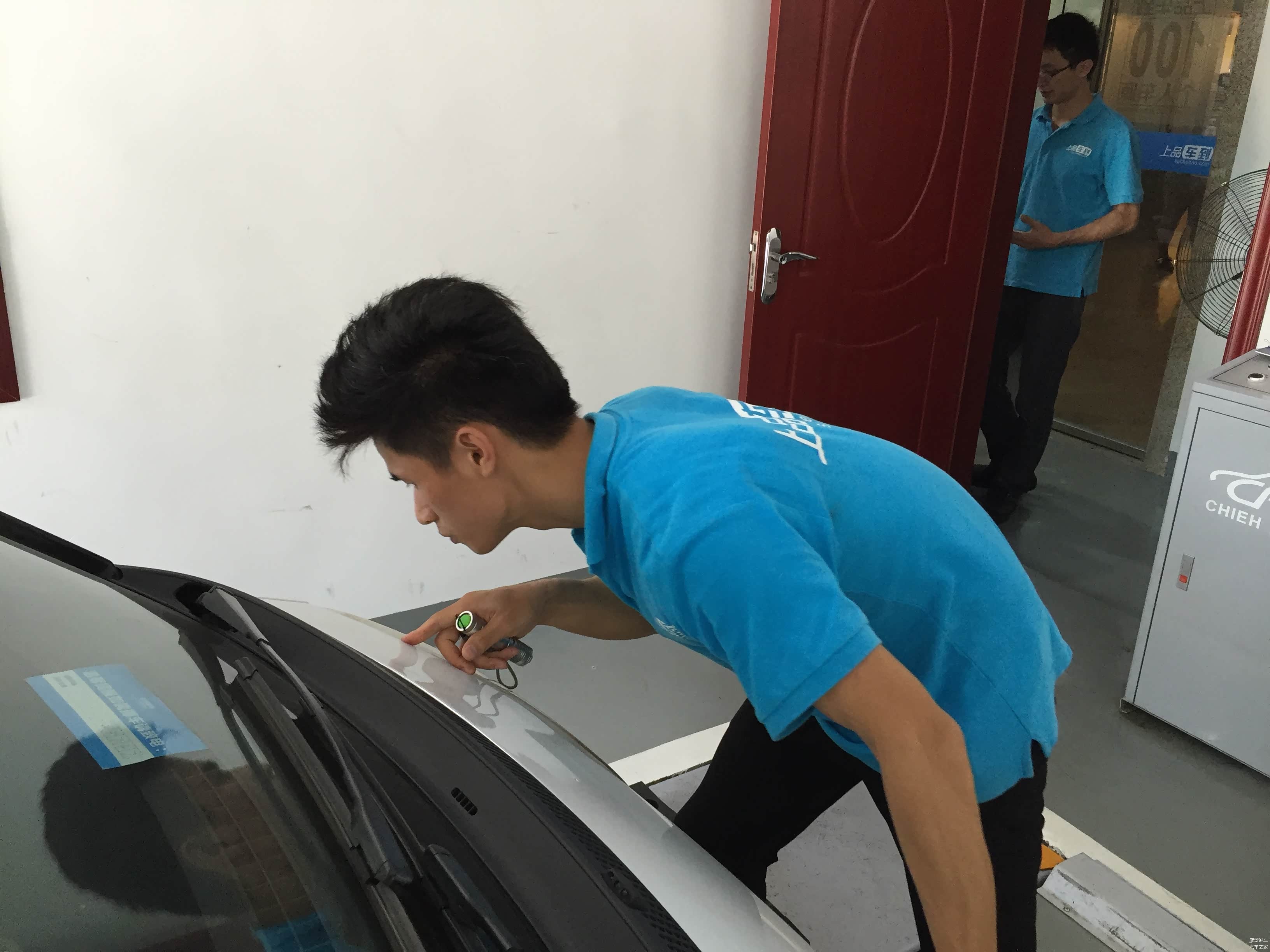 为了确保百分百把握车况、不放过任何一个死角;动作有点夸张,敬佩!