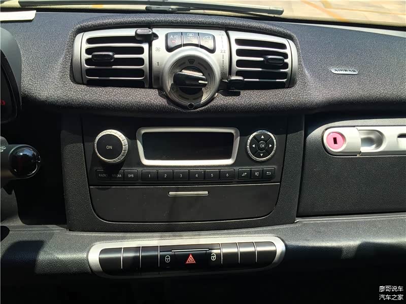 smart fortwo内部的设计和外形设计风格基本保持一致,营造出了细节外观 一种浓浓的卡通味道。