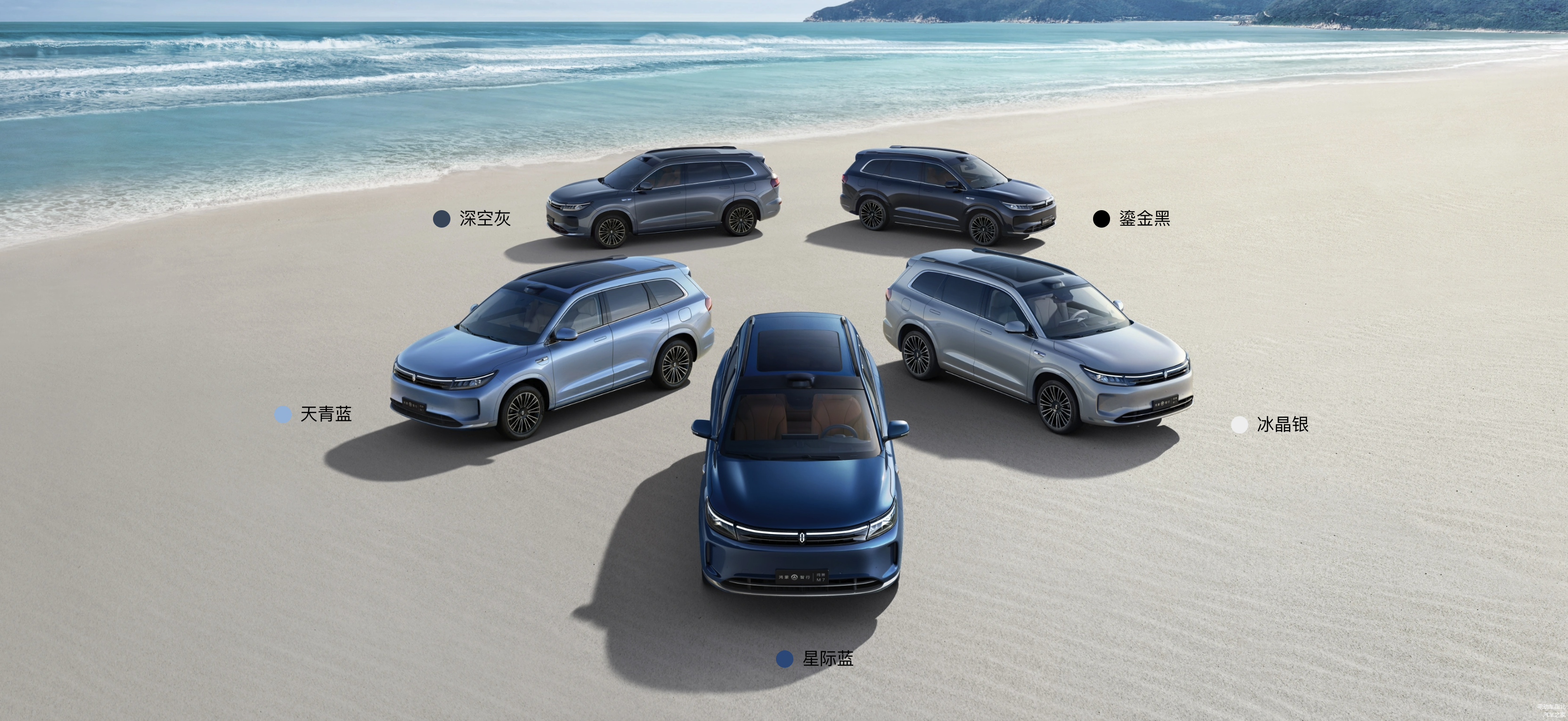 外观颜色:新车有鎏金黑、天青蓝、冰晶银、深空黑和星际蓝五种配色,其中星际蓝选装价格为 6000 元。