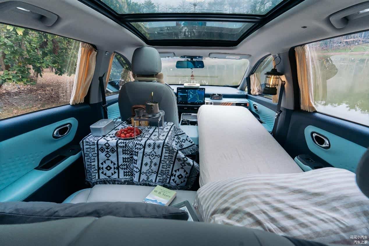 旅途中,老婆就惊讶于 AION Y(图片 | 参数 | 询价)的空间。她没想到这车外面看起来小巧可爱,内部却别有洞天。我心中暗笑:“待会肯定让你更吃惊。”到达营地,周围已是一片忙碌的搭帐篷景象。虽然我们俩都不是搭建高手,但作为AION Y车主,我完全不担心。只需将头枕拆下,前排座椅靠背放平,这样就可以和后排座椅进行连接,铺上充气床垫,瞬间变身为1.8米的温馨双人大床。我们在水库边嬉水尽兴,疲倦时便返回车内小憩,让空调吹出的凉风为我们抵挡夏日的酷热,露营都无需蒸桑拿。
