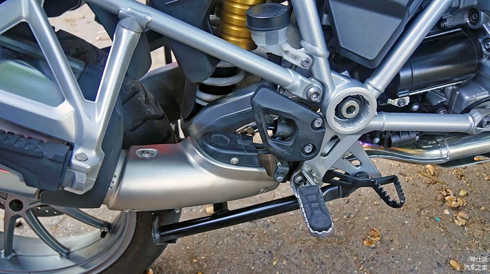 旅行摩托的车身就比一般的街车和越野摩托要重,而1.2升的发动机排量甚至已经超过一些汽车发动机,自然也不可能轻松。沉重的车身最显而易见的影响,是让我意识到自己似乎不够强壮——虽然相比大部分中国人我的力量并不差,如果在停车的过程中忘记支起边撑,又不小心失去平衡,很难靠自己的力量将车拉回来,而车倒了以后也要很吃力才能将车子扶起来。主脚架则是完全需要放弃使用。