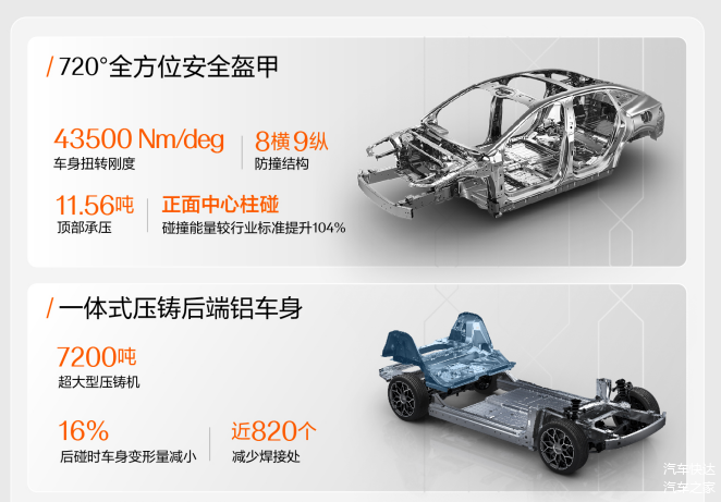 首先,我们来看看极氪007。这款车承袭了极氪品牌的全域安全理念,不计成本地投入安全研发。其车身结构采用了高强度钢、超高强度钢以及热成型钢的混合设计,整车中这些高强度材料的使用量高达55.5%。此外,一体式压铸后端铝车身和6大极氪独创测试标准为车辆提供了坚实的被动安全保障。特别是其A柱、B柱均使用了1500MPa热成型钢,使得车身在受到强烈撞击时能够有效抵御外力,保障乘员的安全。同时,极氪007还采用了8横9纵的防撞结构,通过层层阻隔和逐步缓冲,有效吸收碰撞能量,进一步提升了车辆的安全性能。