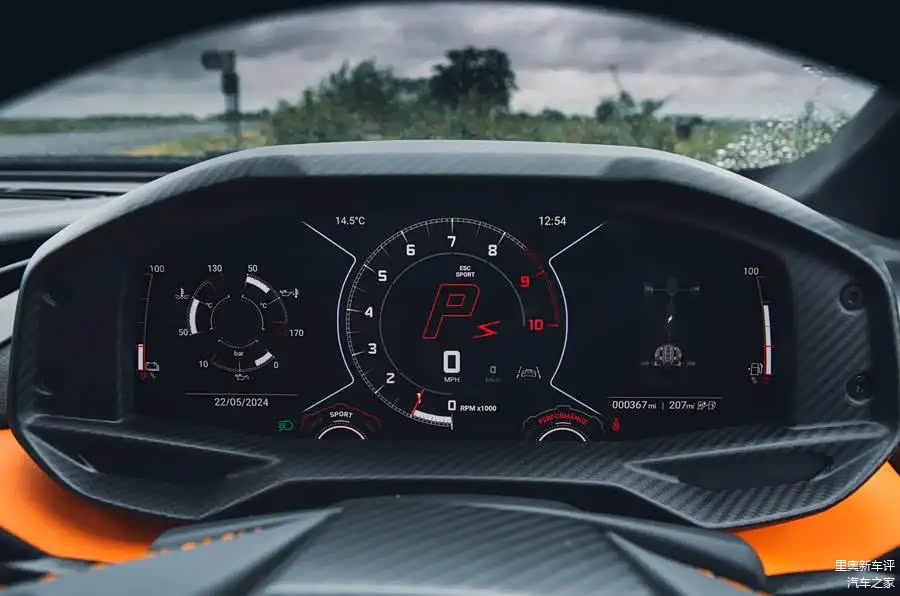 方向盘设计出色,纤细、坚固,握感舒适,特别是在九点钟和三点钟的位置。换挡拨片依然是兰博基尼的标志,夸张而出色。至于变速箱,新型双离合器变速箱虽然减少了一些旧款自动手动变速箱的参与感,但换挡期间的扭矩流不会完全中断,使得Revuelto更接近于现代超级跑车的顶尖水平。
