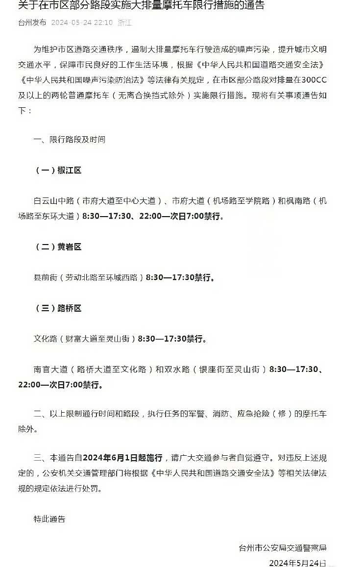 让人庆幸的是,这项措施并没有把大排车型完全封杀,早7:00至8:30,晚17:30至晚22:00是可以通行的。让大排车主可以上下班通勤。同时我个人分析,觉得这两个时段车流量较大,摩托车的噪音也不是很明显,也算是网开一面了。