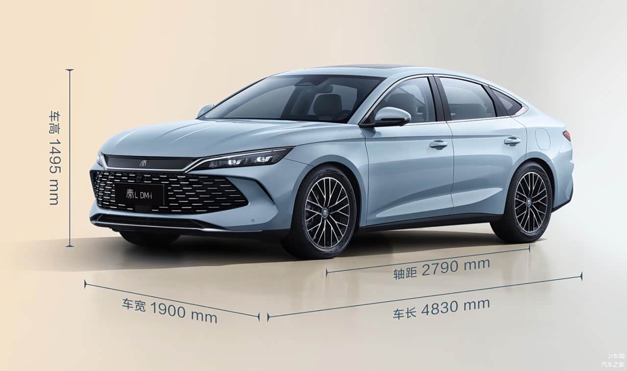 比亚迪秦L的长宽高分别为4830*1900*1495mm,轴距是2790mm,定位是中型车。话虽如此,但它的车身尺寸在同级别并没有明显的优势,尤其是轴距长度,只是属于勉强合格的水平。