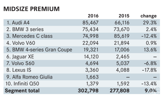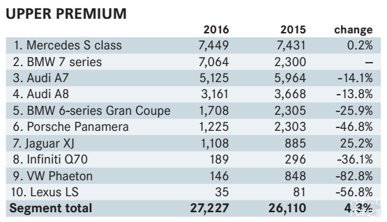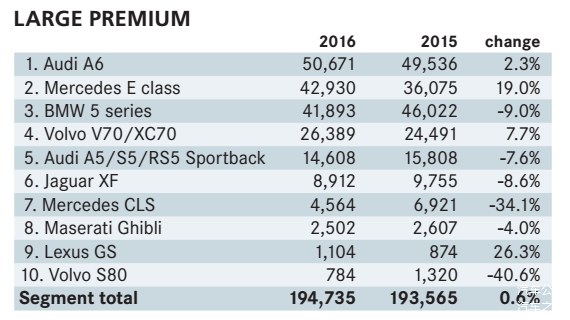 从JATO Dynamics发布的2016年上半年欧洲各细分市场新车销量数据看,BBA在欧洲的各级别表现存在较大差异。以下是汽车公社整理的11个细分市场具体表现: