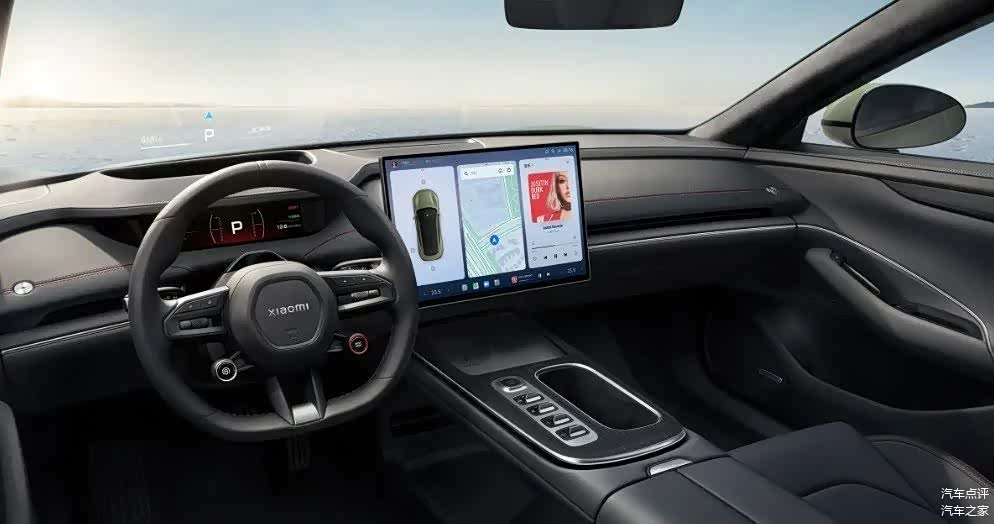 小米SU7的驾驶位采用中轴对称设计,坐姿、握姿、视线实现中轴对齐,从功能到设计均服务于驾驶者,尤其是驾驶位还配备了主动侧翼支撑,其采用双侧翼气泵设计,在高速过弯时,可智能提供对应侧向支撑,从而达到辅助稳定坐姿,有效提升了驾驶专注度和安全性。7.1英寸仪表屏可在启动瞬间实现翻转,颇具运动属性,更是带来了满满的驾驶仪式感。16.1英寸3K中控屏内置Xiaomi HyperOS,搭载高通骁龙8295芯片,车机体验流畅自如,更可与手机、车载屏幕、智能家居深度互动,打造默契无间的智能座舱体验,毕竟小米是以造手机起家的,车机系统对于它来说是信手拈来。同时呢,基于小爱大模型打造的智能语音系统可带来更加拟人化的人机交流体验,交互体验几乎秒杀市面绝大多数产品。后排还能拓展大屏,支持导航、空调、座椅、音影等30+项控车功能,可以享受与前排几乎一致的原生车机体验。