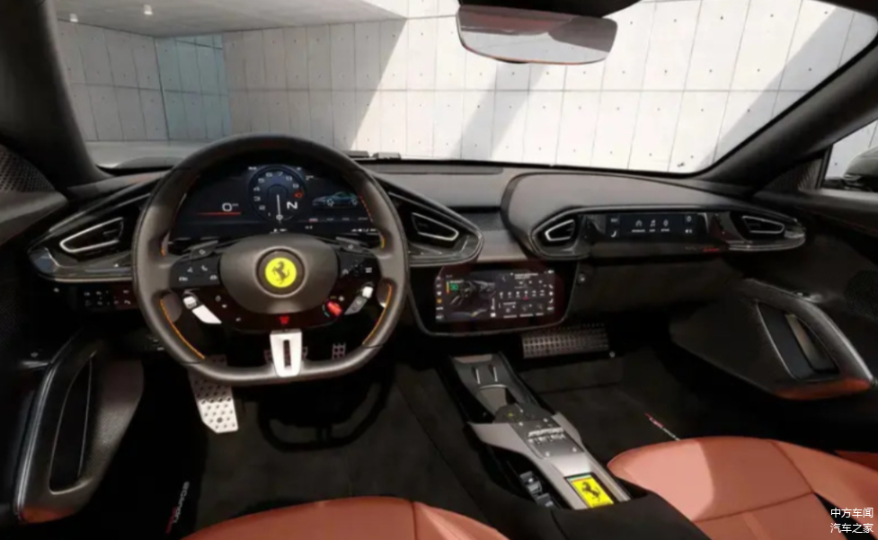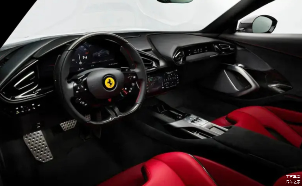 内饰方面,12Cilindri采用了Purosangue上的设计理念,并融入了更多科技化元素。新车配备了15.6英寸的全液晶仪表盘、10.25英寸内嵌式的中控多媒体显示屏以及8.8英寸副驾驶显示屏,为驾驶者提供丰富的行车信息和便捷的交互体验。此外,新车还采用了触摸式设计的三辐式多功能方向盘,整体设计充满未来感。