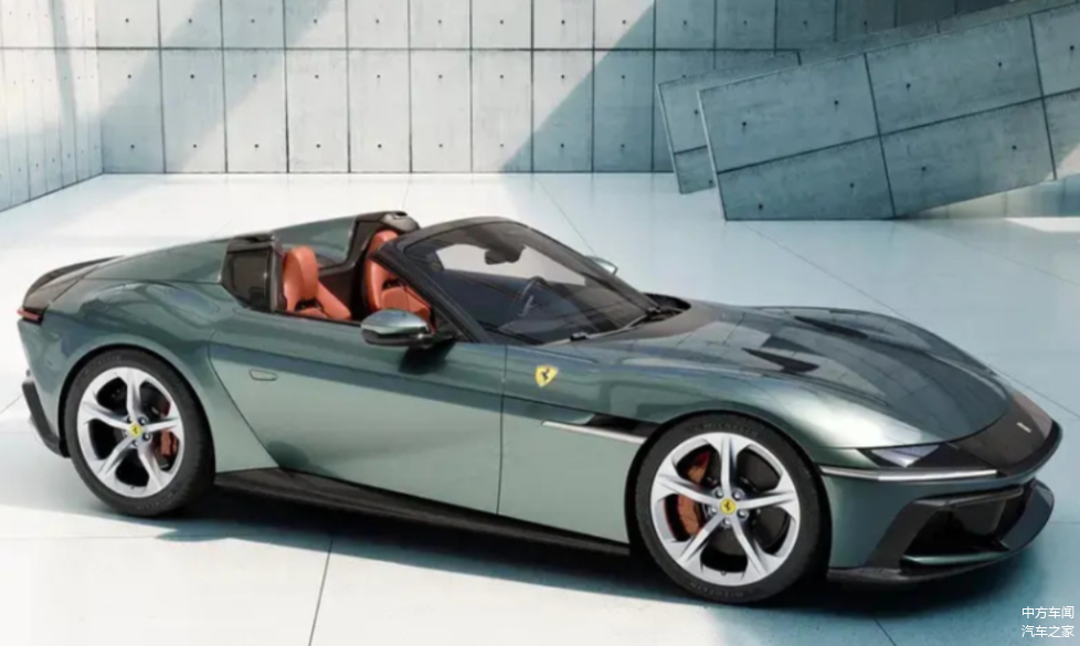 车尾部分,硬顶版配备了后窗玻璃,而敞篷版则采用了封闭式的后盖设计,并搭配了与法拉利SP2车型相似的双峰防滚架造型,展现出高级定制的独特魅力。新车还融入了多个空气动力学风道设计,尾部两侧的襟翼可根据驾驶需求调整至低风阻(LD)模式或高挡下压力(HD)模式,以满足不同驾驶场景的需求。同时,双层尾部扩散器搭配双边共四出的排气布局,更是将运动感发挥到了极致。