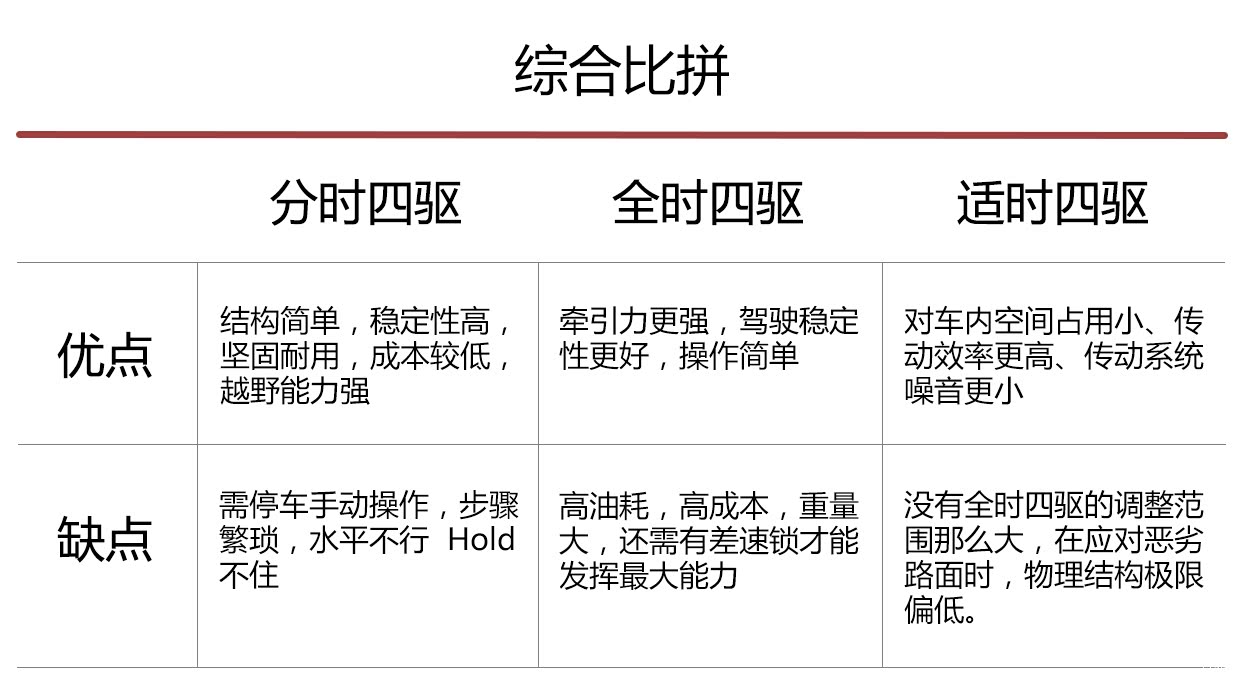 全时四驱>适时四驱>分时四驱