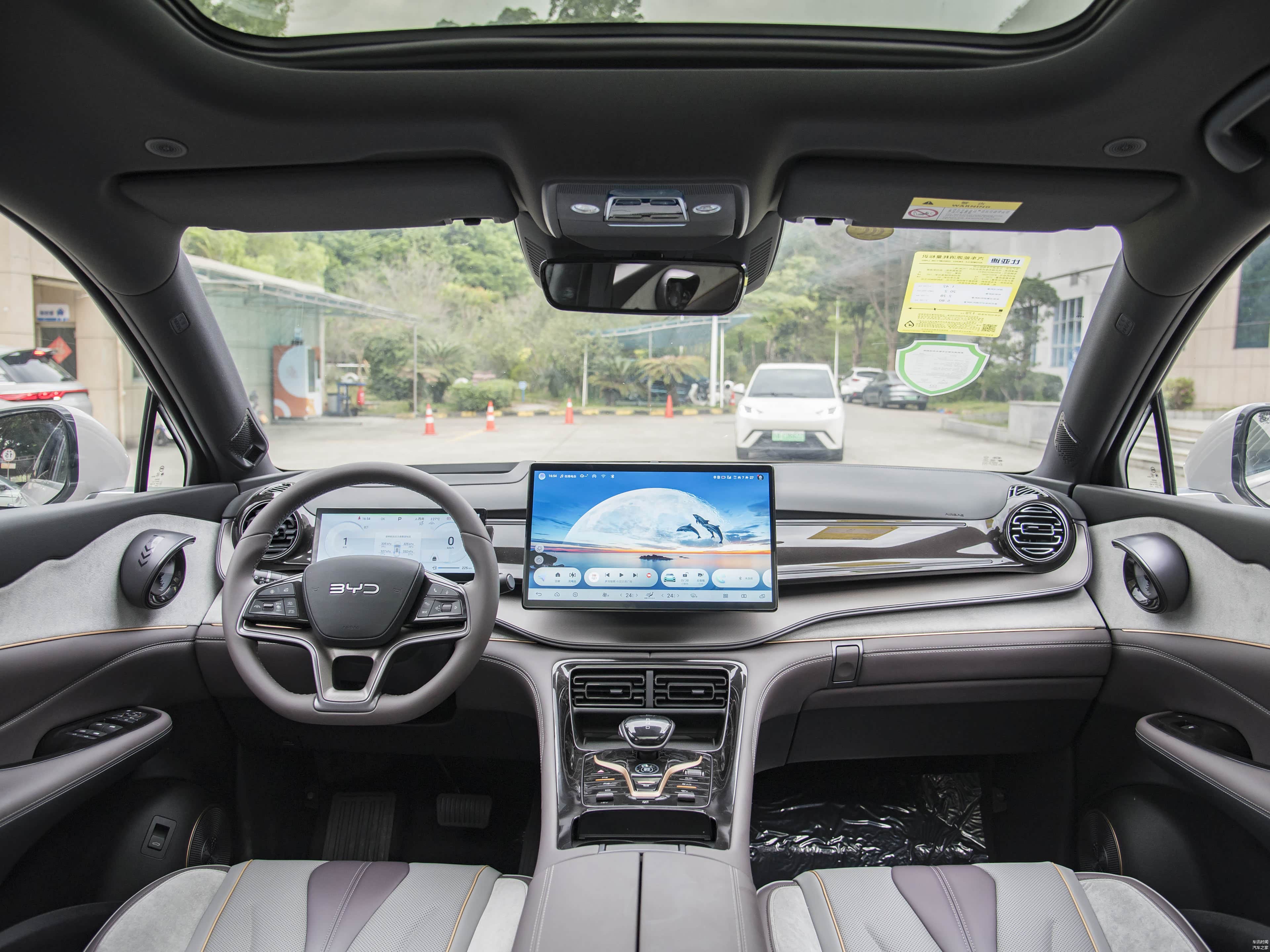 内饰方面,护卫舰07荣耀版新增“贝壳白”内饰配色,标配10.25英寸液晶仪表与15.6英寸可旋转中控大屏,搭载DiLink车载智能系统,配备定制高通骁龙8核处理器,支持地图/壁纸双桌面、全场景语音、连续语音识别等功能。此外,该款车型还标配主副驾安全气囊、前排侧气囊、前后排头部气帘、前后驻车雷达、透明底盘/540度影像、定速巡航、无钥匙进入与启动、远程启动、全景天窗、前排多层隔音玻璃、后排侧隐私玻璃等配置。除入门版外,其他车型还配备车道偏离预警、主动刹车、DOW开门预警、前后方碰撞预警、全速自适应巡航、并线辅助等功能,且前排手机无线充电功率升级至50千瓦。