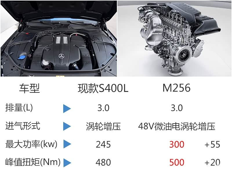 M256 48V微油电 3.0 L6涡轮发动机S400L,迈巴赫S级、CLS320、GLE320、GLS350等车型