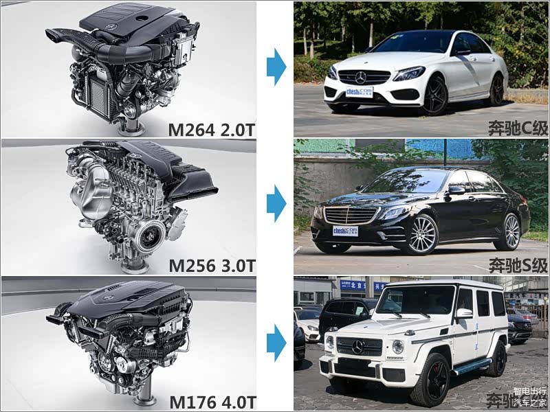 在搭载车型上,M264的全新2.0升直列四缸涡轮发动机将广泛布局在奔驰A级,B级、GLA级、CLA级、C级、GLC级、E级和相应平台的英菲尼迪车型。M256、48V微油电直列六缸汽油涡轮发动机将最主要装配在奔驰S400L和迈巴赫S级车型上,同时CLS,GLE和GLS等高端型号车型也有望搭载。M176的4.0升V8双涡轮增压发动机将装配在新款的奔驰G500以及SL500,S500L和GLS500上。奔驰动力升级将极大的提升奔驰车型在同级车型的竞争力。