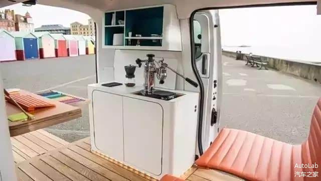 如果天气好,两边的滑动门都可以打开,并且可以拆下车门,创造一个更开放的工作氛围。在车后部,浮动甲板可以被拉出来来,提供了一个户外区域,可以边工作边欣赏你周围的环境。