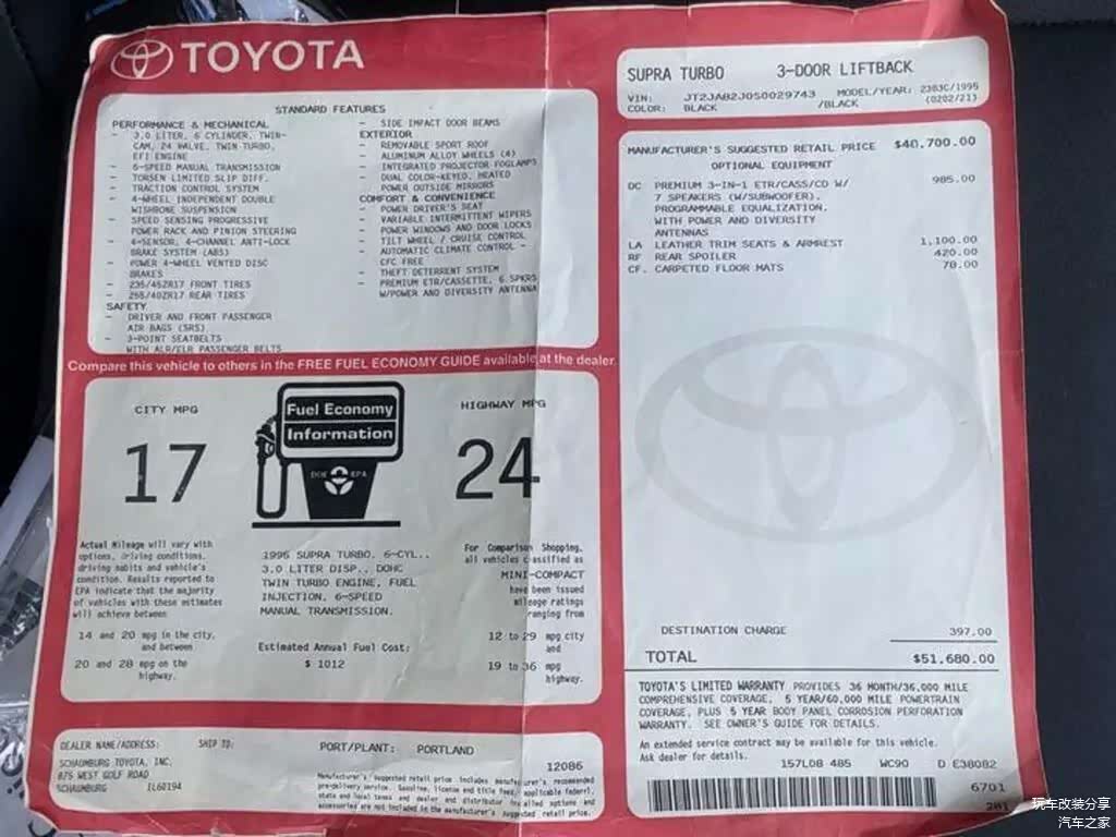 这辆产自1995年的RZ后期版Supra,拥有最佳的配置,3.0直六发动机搭配6速手动,可拆车顶,原厂轮毂,行驶里程仅有16,100公里,就如准新车一般,拍卖价格达到了15万美元(约合人民币108.8万)。