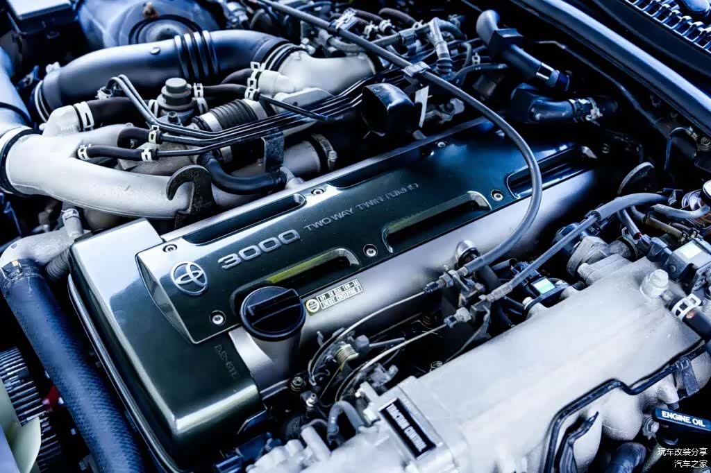 这是一款电影同款的第四代Supra,拥有Aero Top可拆车顶和2JZ-GTE发动机。这一代Supra代号为A80,产自1993年,带涡轮的拆顶版本重量1.57吨,前后配重比53:47,机盖、车顶等等覆盖件采用了铝合金材质。2JZ-GTE发动机在日本遵守“君子协议”,马力为280匹,最大扭力431牛米;美规版本有325匹马力、441牛米扭力;欧规更达到了330匹。传动方面,自动挡版本采用A340E四前速自动变速箱;而手动版本则采用6MT。相比起低效的4AT,6速手动才能发挥3.0升涡轮发动机的全部实力。