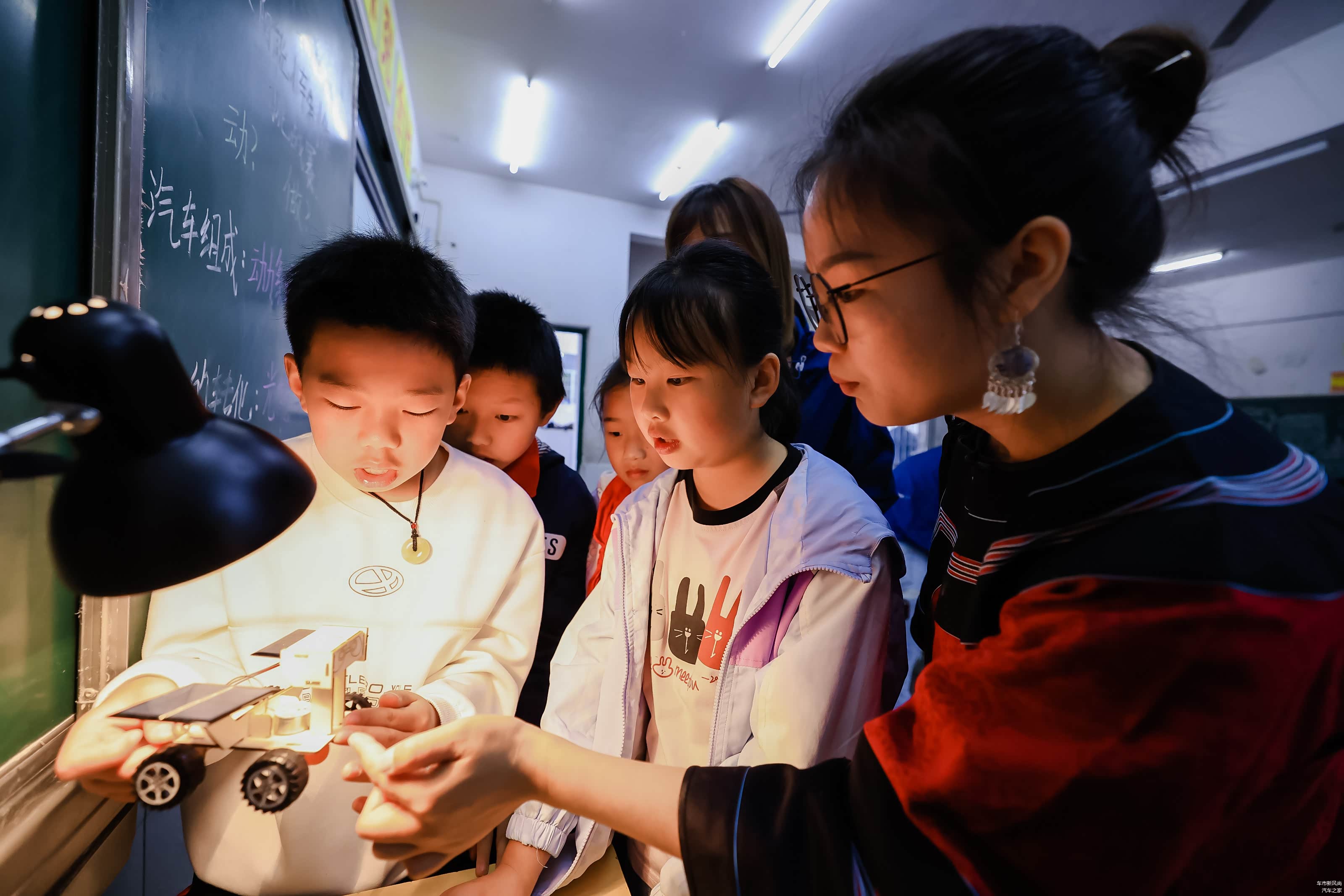 探访中,志愿者们不仅为学校送去了文化用品,还全身心融入孩子们的日常学习中。他们以助教的身份加入到STEM课堂中,与四、五年级的孩子共同完成《设计捕虫器》和《太阳能运输车》的课程。志愿者与孩子们在课余时间进行了篮球比赛和横幅涂鸦的活动,感受了孩子们精彩的苗族舞蹈式课间操与武术表演。此外,志愿者们还化身守护者,大手拉小手, 陪同孩子们一起放学回家。