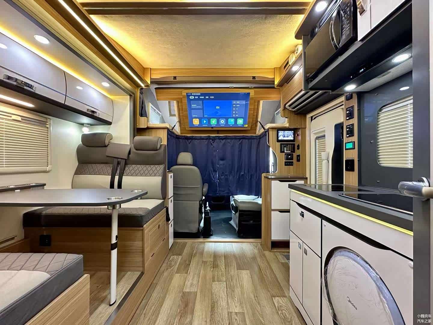 外观尺寸为5995×2300×3200(mm),发动机方面搭载了170匹马力的3.0T柴油发动机,带有澎湃的扭矩,造就了优秀的动力表现。与此同时,与之匹配的采埃孚8AT变速箱源于德国,堪称变速箱之王,带来了平顺的换挡表现。同时还配备了遮阳棚和户外抽拉燃气灶、双向储物柜,物品拿取方便快捷。车辆驻车支撑保证驻车平稳性。