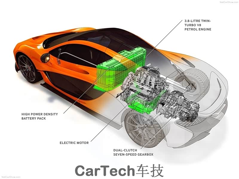 作为新世代的超跑,迈凯轮P1除了搭载一台M838TQ 3.8升的V8双涡轮增压发动机,还搭载了功率为197马力的电动机与之配合,以弥补涡轮增压发动机固有的涡轮迟滞现象,让发力曲线更加完美,当这套混动系统协调工作时,综合最大功率达到了916马力,最大扭矩900N·m。足够让其在3秒内完成百公里加速,并将极速推至384km/h,仅比当年创下最速记录的迈凯轮F1的极速慢2KM/H。