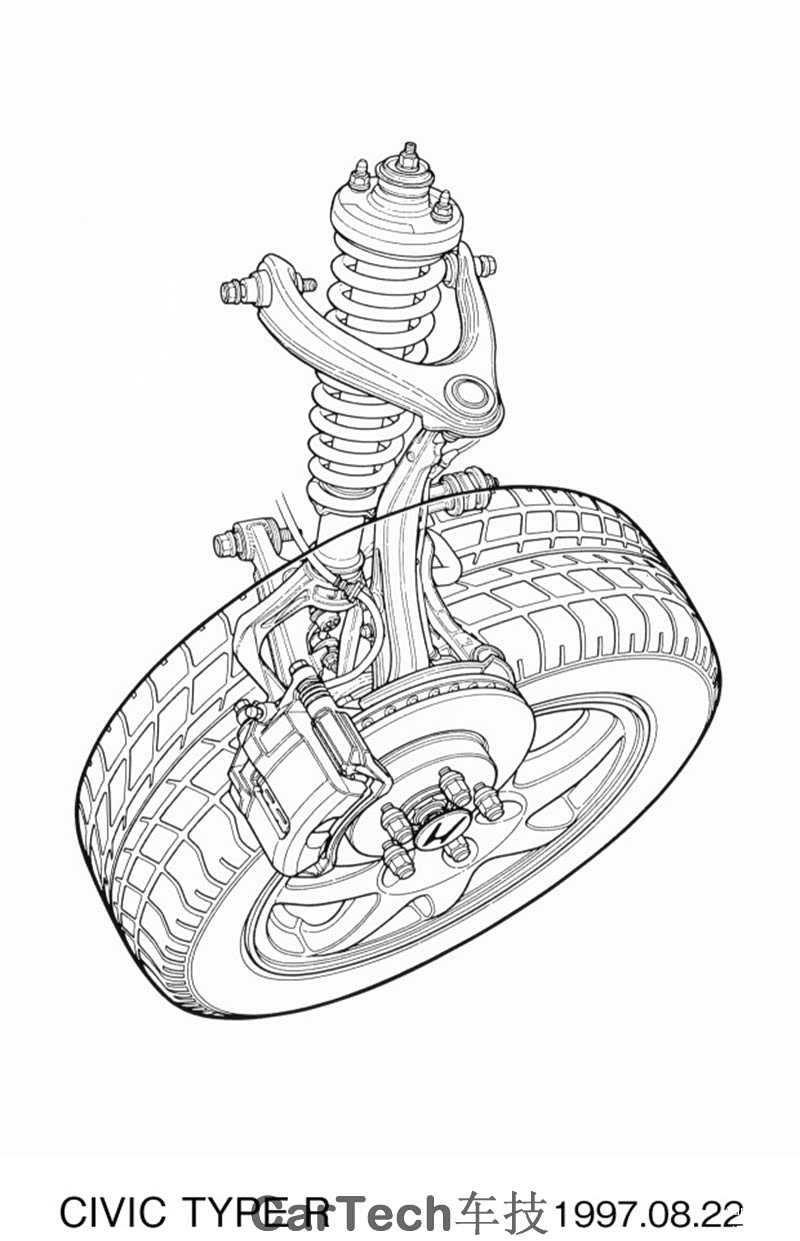 小钢炮不仅仅需要发动机出色,还需要有灵活的操控,前后双A臂悬架首次出现在身形小巧的两厢车上,让EK9 TYPE-R拥有媲美高性能车型的操控极限。直至今日,EK9 TYPE-R依然可以看作前驱高性能车教科书式的存在。