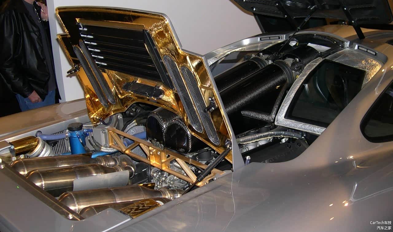 碳纤维集气箱和12-4的排气系统都不是亮点,看到引擎盖背面那金晃晃的材料了吗?对,那就是金箔,用来反射热辐射的,这样的隔热方式多见于人造地球卫星上!从这个细节可以看出生产迈凯轮F1是下了多大的血本!
