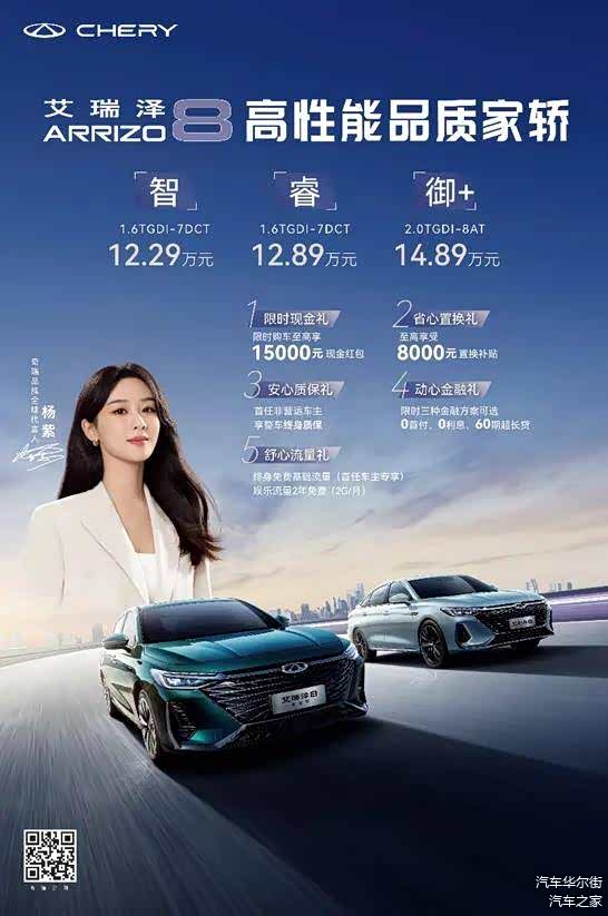 27年来,奇瑞一直坚持用技术创新,为用户提供更优质的产品,让全世界看到中国智造的力量。奇瑞始终倾听每一位用户的心声,产品不断全面进阶。6月16日,奇瑞汽车“性能家轿王者” 艾瑞泽8(图片 | 参数 | 询价) 1.6T、2.0T推出新版型,以“8芯8速”实力领跑10-15万家轿市场。其中艾瑞泽8高能版加推“御+”版型,官方指导价14.89万元,新增2.0T+8AT动力总成,性能再进阶;艾瑞泽8 1.6T加推“智”、“睿”双版型,官方指导价分别为12.29万元和12.89万元,新增8155芯片+24.6吋双联屏等智能配置,科技再进阶。