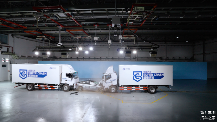 日前,在中国汽车工程研究院汽车安全技术中心开展的全球首次“重型卡车双重魔鬼夹击碰撞”试验中,极狐阿尔法S5成功“扛住了”两辆卡车的前后“包夹”,又完成了一项与众不同又难度极高的碰撞测试。