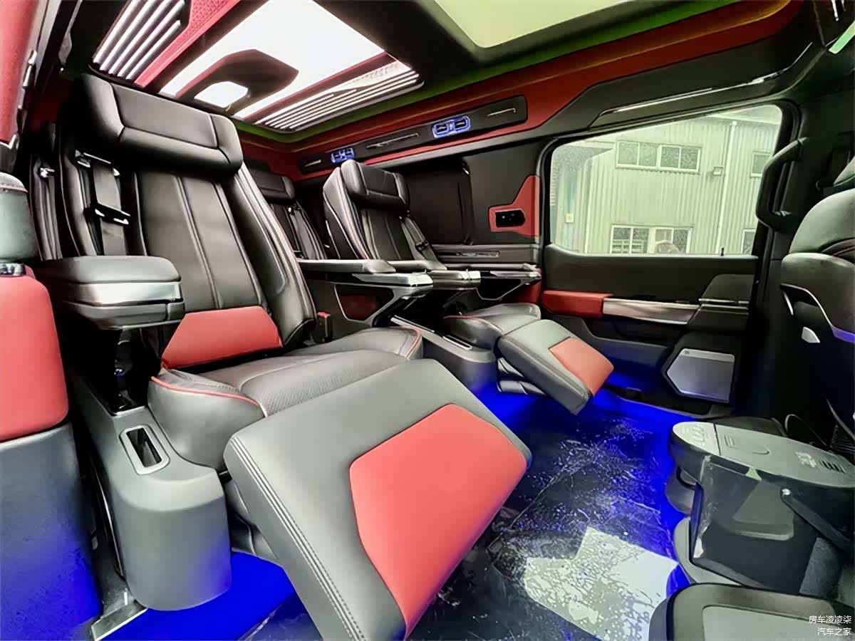 勇猛者的座椅安排也十分考究,车内采用3排7座布局,第二排为两张独立座椅,具备通风、加热以及按摩功能,第三排座椅支持电动调节,可前后移动,充分体现了豪华与舒适的设计理念。