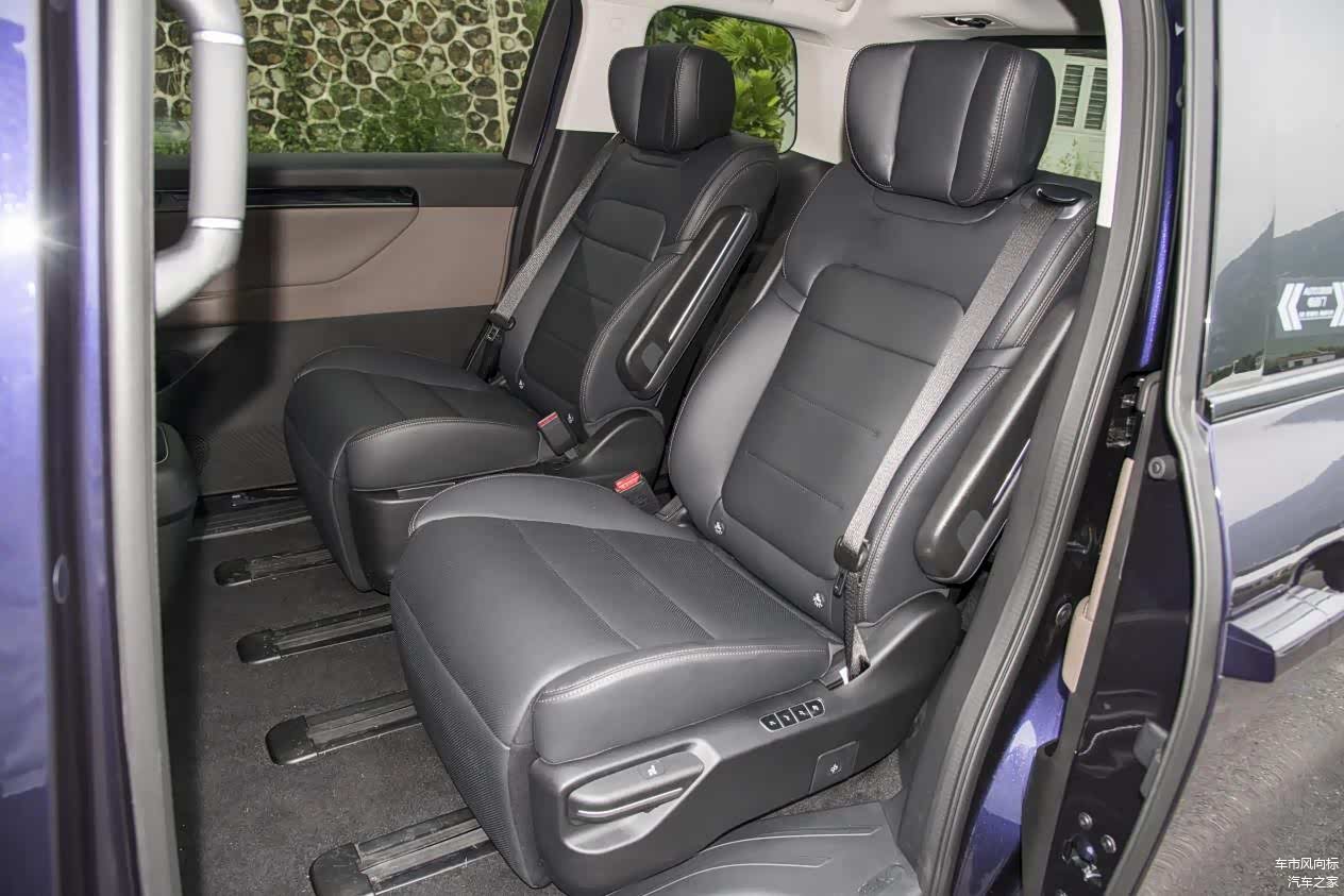 1760毫米的车高,身高175厘米乘员在第三排也能有接近1拳的头部空间,腿部空间同样是合格的,在将二排座椅调至1拳多时,第三排的腿部空间也能有1拳多,要说缺点就是第三排座椅稍微单薄了点,舒适性比不上第二排,另外就是三排座椅的头枕确实离后车窗比较近,这也是中型MPV普遍存在的现象,毕竟尺寸就那么长。