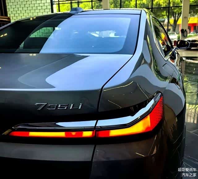 车尾部分,层次感丰富的设计让人过目难忘。尾灯造型扁平而独特,经过熏黑处理,与前大灯遥相呼应,营造出强烈的运动氛围。后保险杠简洁大方,隐藏式排气的布局更显高端大气。车尾处的“735Li”标识,更是彰显了这款车的尊贵身份。