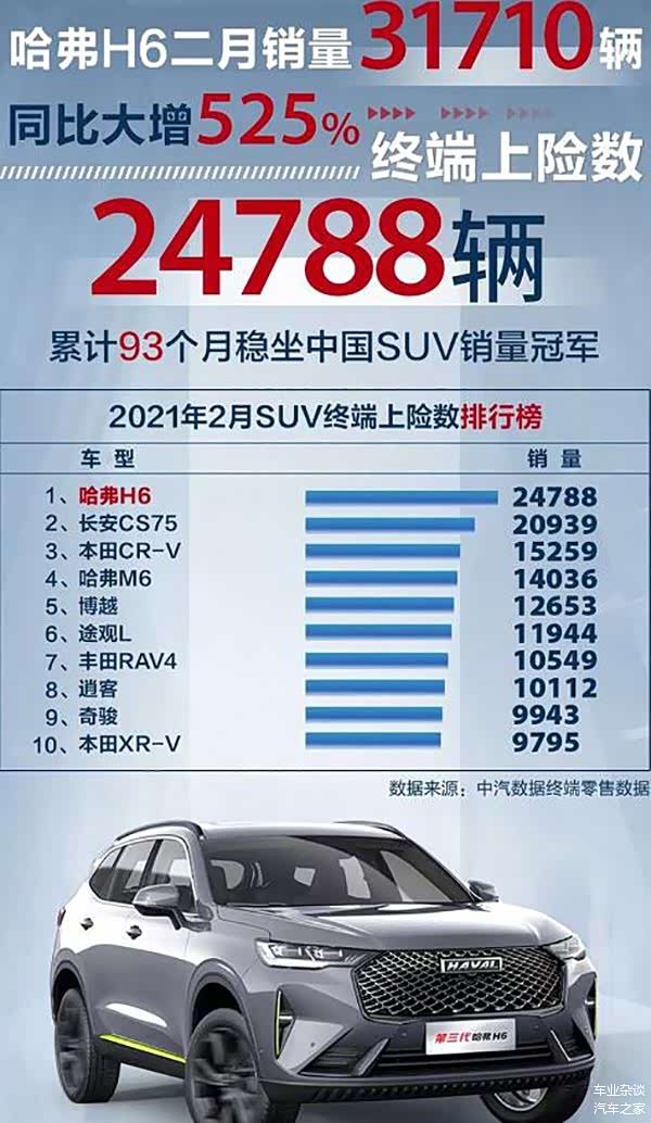 只要关注过中国SUV市场发展历史的朋友,都会知道哈弗H6这款车型。可以说,哈弗H6不仅是长城汽车发展历程中最成功的一款车型,也是中国自主品牌在SUV市场领域的领军车型,更是中国自主品牌站上和站稳10万级汽车市场,实现向上突破的关键车型之一。2011年8月上市以来,哈弗H6于2012年就实现了14万的销量,更是从2013年起至2021年实现了在细分市场连续9年的销量冠军,截止目前,哈弗H6的累计销量也早已超过400万辆,向500万辆累计销量靠近。