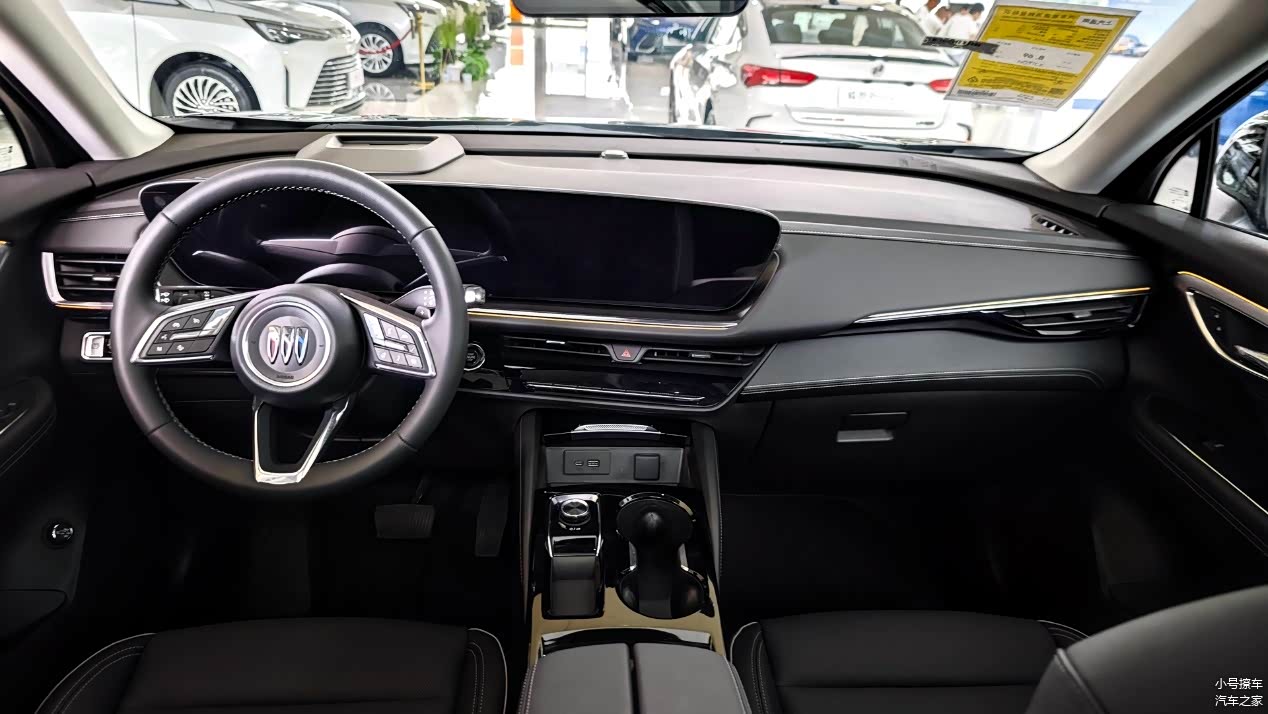 内饰方面,昂科威Plus新车提供有三幅式多功能方向盘、曲面贯穿式双联屏以及电子怀挡,中控台大面积使用了软质材料进行包裹,质感表现比较出色;双联屏的尺寸达到了30英寸,分辨率达到了6K级别,搭载的是高通骁龙8155芯片,一改以往那种老气的风格,变得科技感十足。