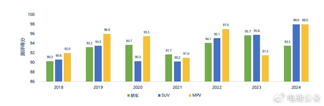 发现四:中大型SUV、MPV车型虽个头大、用料多,但空气质量管控较好。中大型SUV、MPV往往偏向于家庭用,配置了较好的通风和空气净化系统。测评结果印证了相应配置产生的积极的效果,中大型SUV、MPV车型车内空气质量水平表现显著 ,得分领先约1.6%。