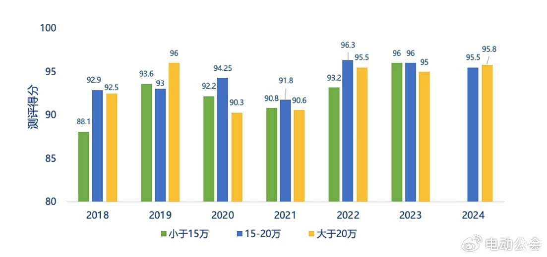 发现二:健康性能已由高端走向平民,15-20万区间车型表现抢眼。测评结果发现,各个价格区间的车型近年来车内气质量均得到有效提升,车内环境优秀已不再是高配、高档次的代名词,15-20万价格区间的车型平均得分率超越其他价格段车型,这意味着“价格高≠车内空气质量好”。